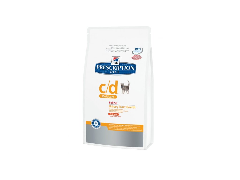DOPLŇUJÚCE INFORMÁCIE Je dôležité sledovať moč pro zistení, či bola dosiahnutá cielená hodnota pH, a ak je to nutné, je potrebné eliminovať infekciu močového traktu. Ostatné produkty na zváženie. Dôvody, preo zmeniť diétu Feline c/d Multicare na inou pri FLUTD, sú: Rozpúšťanie struvitových urolitov: Prescription Diet™ Feline s/d™. (Feline c/d Multicare je určená na dlhodobé podávanie po rozpustení alebo odstránení struvitových urolitov). Terapia maček so sklonom k obezite: Prescription Diet™ Feline w/d™ má podobnú charakteristiku ako Feline c/d, ale so zníženým obsahom kalórií. Pre prípady FLUTD, spojené s výskytom urátových, cystinových alebo xantinových urolitov: Prescription Diet™ Feline k/d™. Ak je kalcium fosfát prítomný vo forme brushitu: podávajte Prescription Diet™ Feline k/d™.