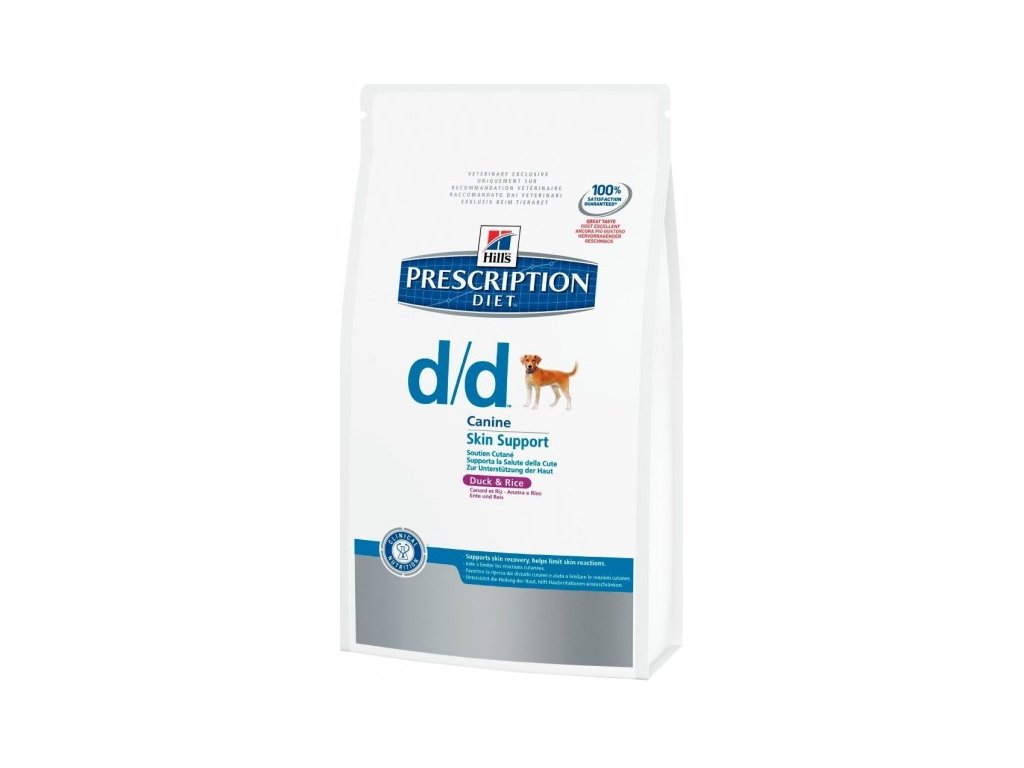 DOPLŇUJÚCE INFORMÁCIE Štyri receptúry s novými zdrojmi bielkovín kombinuje jeden zdroj živočíšnje bielkoviny (jahňa, losos, vajce, kačica) s ryžou. Pre zvýšenie chutnosti obsahujú granuláty hydrolyzované kura. Tento hydrolyzát má priemernú molekulárnu hmotnosť ménej ako 6.000 daltonov a naviac neobsahuje neporušené molekuly bielkovín, takže predchádza vzniku alergickej reakcie. Táto diéta môže kladne ovplyvniť aj psov s chronickou otitis externa, interdigitálnym pruritom a s perianálnym pruritom, čo môžu byť tiež príznaky vedľajšej reakcie na krmivo. Pri akutnej pankreatitis podávajte Canine d/d granulát vždy až po počiatočnom štádiu, behom ktorého nie su podávané žiadne krmivá ani tekutiny. Ostatné produkty na zváženie ako eliminačná dieta (pre maximálnu spoľahlivosť a diagnostiku potravnej precitlivelosti ): Prescription Diet™ Canine z/d™ ULTRA Allergen-Free. K terapii a eliminácii vedľajších reakcií na krmivo: Prescription Diet™ Canine z/d™ ULTRA Allergen-Free nebo Prescription Diet™ Canine z/d™ Low Allergen.