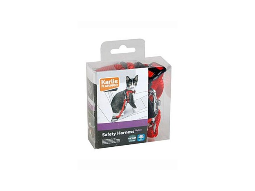 Bezpečnostný postroj, ktorý ponúka jednoduché uchytenie mačky pri cestovaní autom, je možné použiť i k uchyteniu na vodítko. Zamedzí voľnému pohybu mačky po aute.