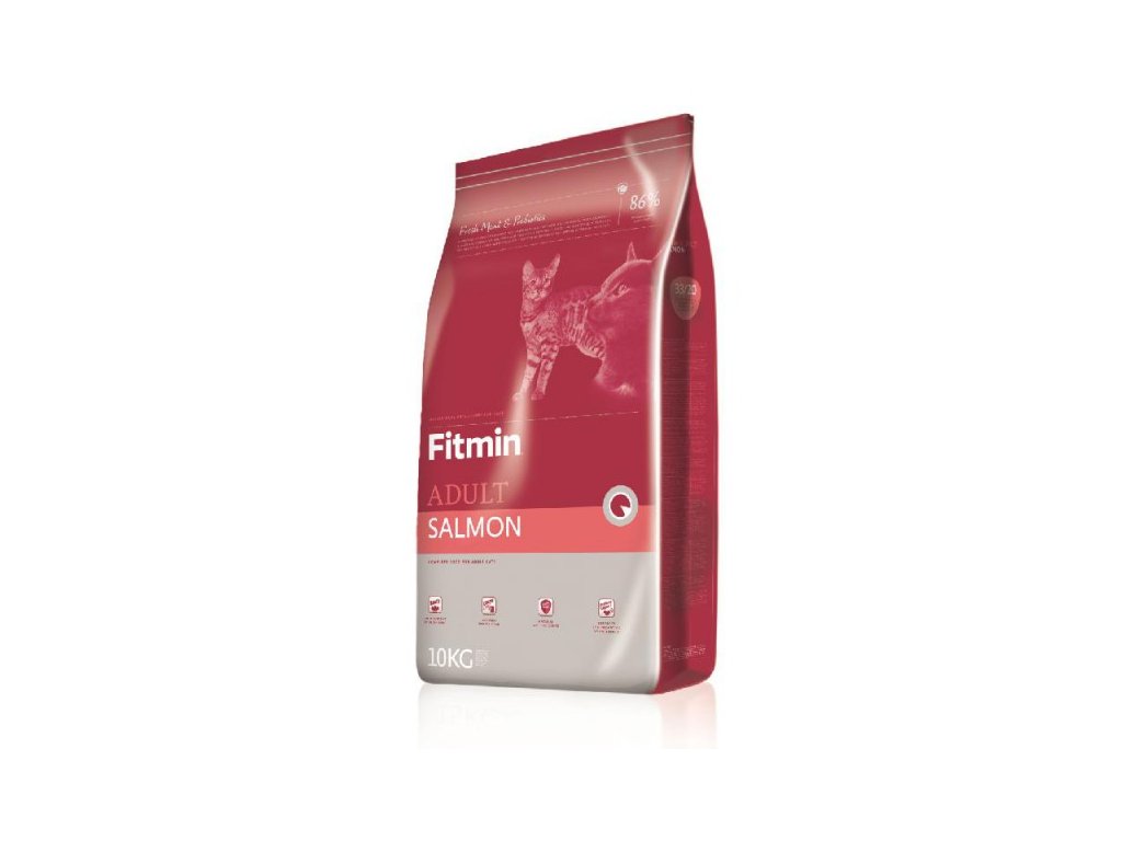 Deklarované akostné znaky Fitmin mačka Adult Salmon: - Bielkoviny 33%, Tuk 20%, energia 15,6 MJ / 1 kg