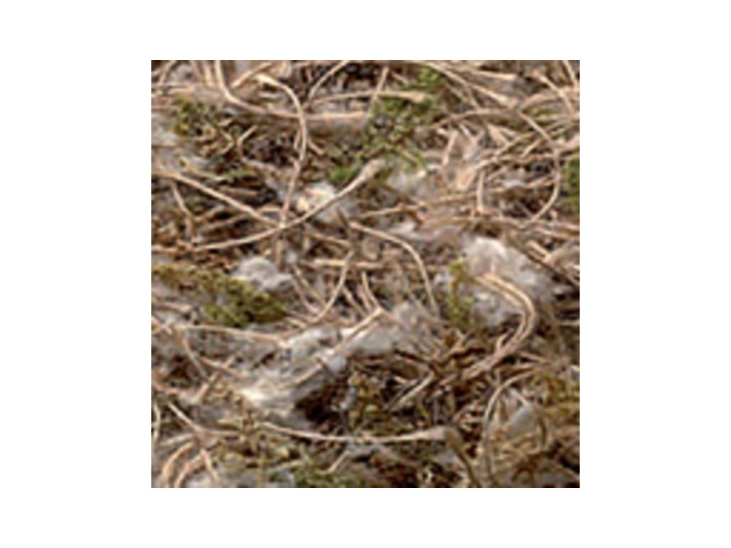 Materiál na stavbu a výstelku hniezda zo zmesi juty, bavlny a machu.