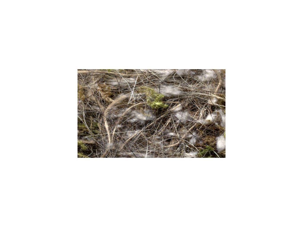 Materiál na stavbu a výstelku hniezda z prírodných vlákien - zmes zvieracej srsti a rastlinného vlákna.