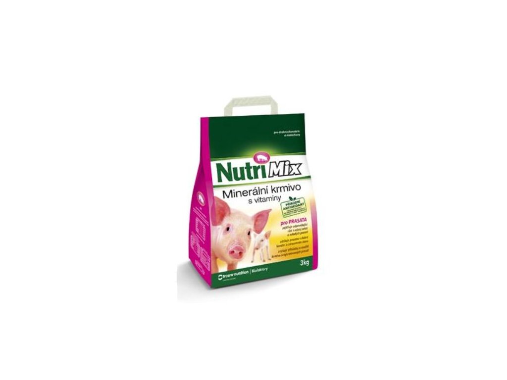 NUTRI MIX je určená pre drobnochovateľov a malochovy. Pridáva sa do kŕmnej dávky prasiatok a ošípaných, ktorú tvoria prevažne obilné šroty, kuchynské zvyšky a ďalšie domáce krmivá. Obsahuje biologicky účinné látky - vitamíny, minerálne látky a aminokyseliny. Táto zmes umožňuje chovateľom doplniť neplnohodnotnú kŕmnu dávku na potrebnú úroveň a zaistiť tak vyššiu prírastky hmotnosti, zlepšenie príjmu a využiteľnosti krmiva, udržanie dobrého zdravotného stavu ošípaných a obmedzenie výskytu porúch pohybového aparátu.