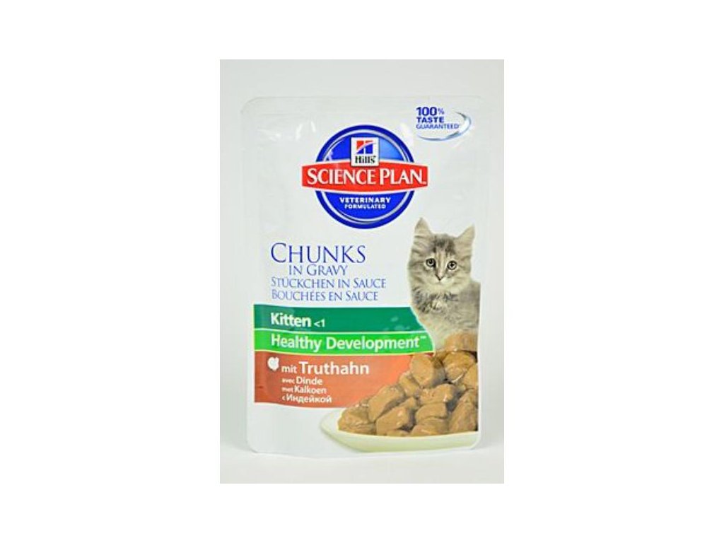 Kompletné krmivo pre mačiatka s morčacím a kuracím v omáčke.