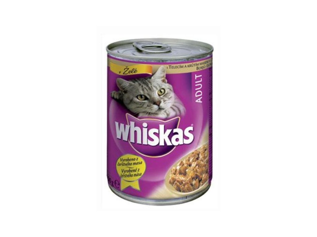 Popis: kompletné krmivo pre dospelé mačky Balenie: 400 g Príchuť: s teľacím a morčacím mäsom v šťave Informácie o produkte: Mimoriadne chutná potrava obsahuje šťavnaté mäsové kúsky v tradičných konzervách.