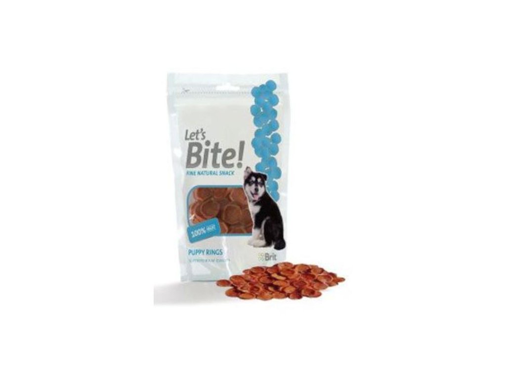 Brit pochúťka Care Let's Bite puppy rings 80g
