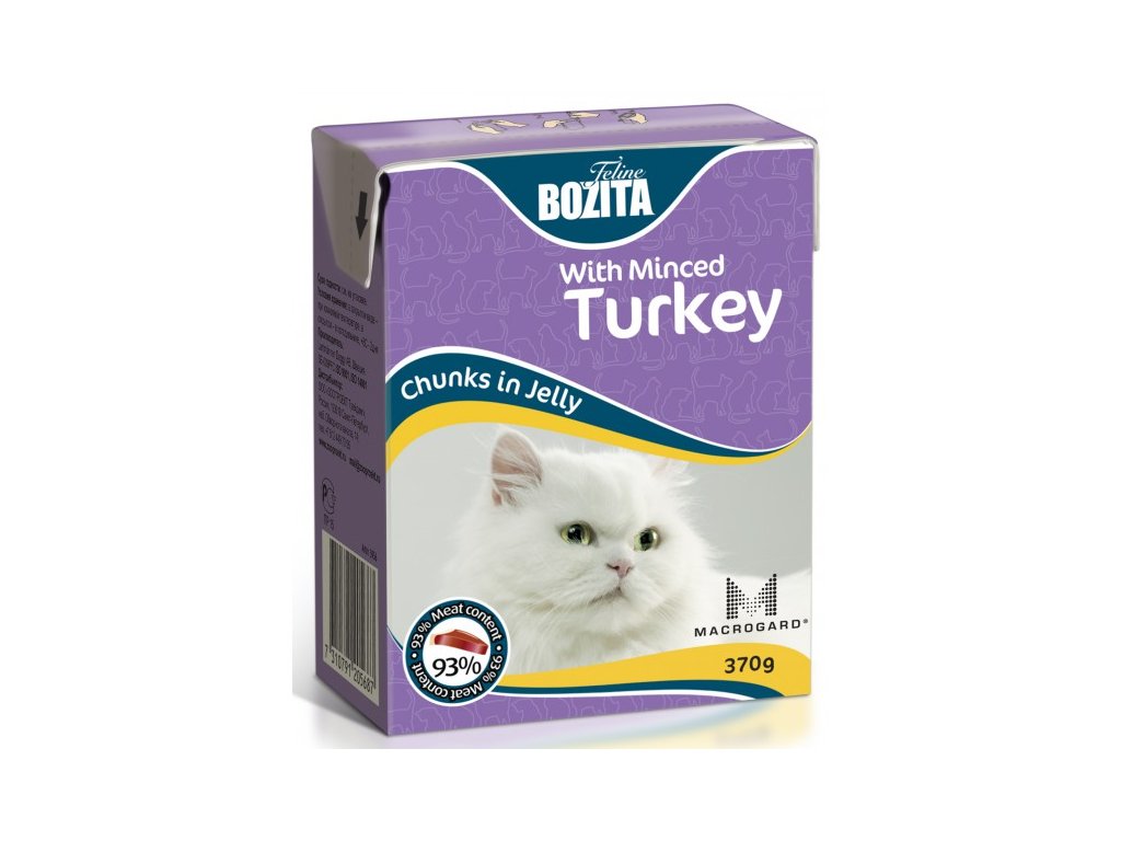 Šťavnaté kúsky s kuracím a morčacím mäsom v omáčke. V recyklovateľnom obale.