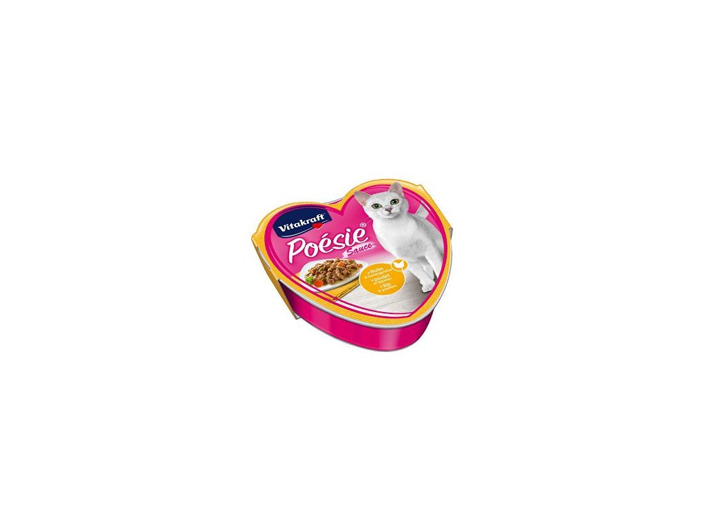 Pekné mištičky v tvare srdca značky Vitakraft obsahujú lahôdky z hydinového, rybieho či iných druhov mäsa v rafinovanom želé, omáčke alebo terina. Všetky varianty radu Poesie sú neodolateľné, lebo sú pripravované s láskou. Zložené sú z vybraných surovín a neobsahujú cukor, farbivá ani konzervačné látky. Môžete tak rozmaznávať svoju domácu šelmu so všetkou láskou!