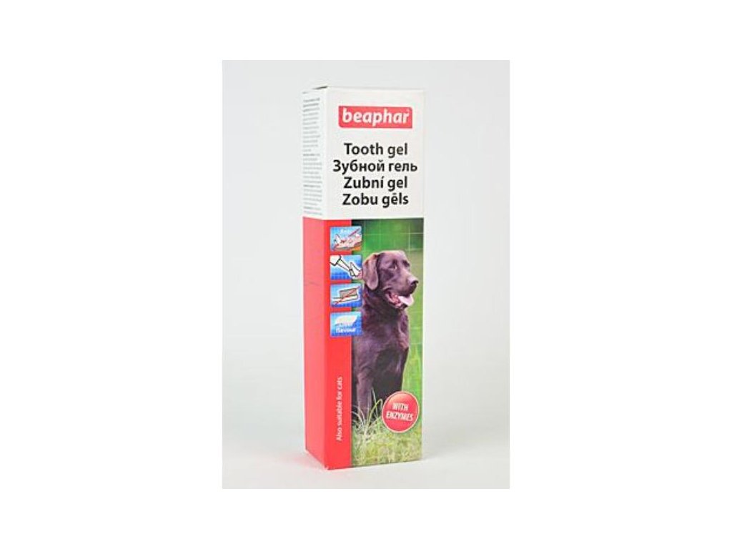 Čisté zuby a svieži dych bez použitia kefky. Beaphar Zubný gél s pečeňovou príchuťou zabezpečuje každodennú ochranu zubov Vášho psa. Gél pôsobí proti zubnému plaku a predchádza vzniku zubného kameňa. Výsledkom sú zdravé zuby a svieži dych Vášho psa. Zubný gél obsahuje 3 enzýmy (proteázu, amyloglukozidázu, glokózooxidázu).