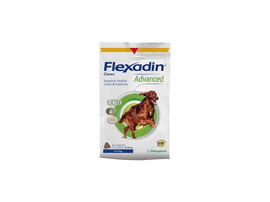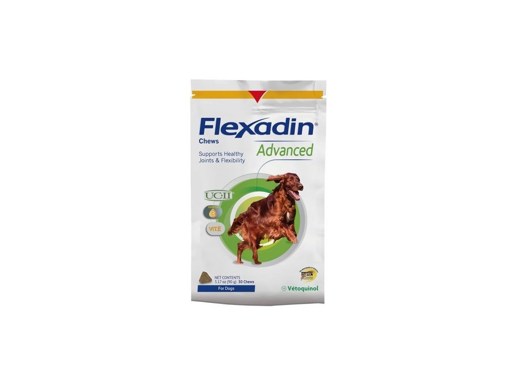 Flexadin Ò Advanced je unikátny výživový doplnok obsahujúci UC-II kolagén (nedenaturovaný kolagén typu II), ktorý má preukázateľný účinok u psov s osteoartritídou, výťažok liečivé rastliny Boswellia serrata, Ktorá je známa pre svoj protizápalový účinok a ďalšie látky podporujúce metabolizmus kĺbov (mastné kyseliny omega 3 a omega 6, vitamín E).