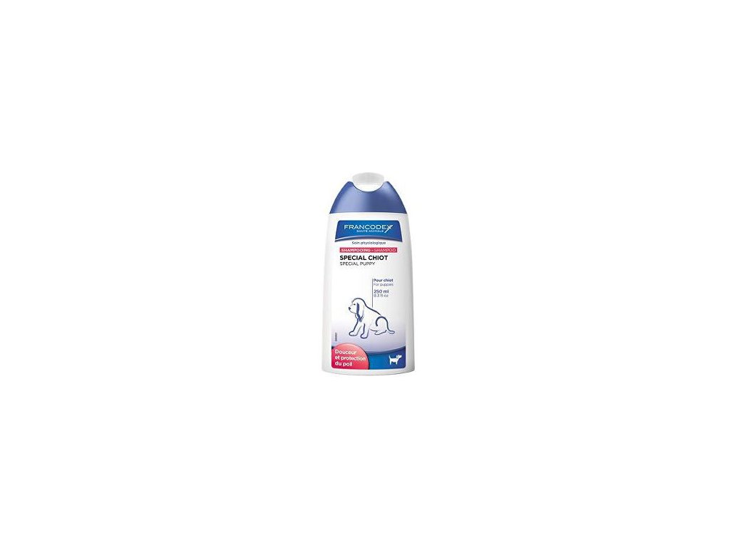 Špeciálny šampón pre šteňatá od FRANCODEX Santé Animale jemne umýva srsť a kožu šteňaťa. pH produktu je neutrálny, a preto nedráždi ani citlivú pokožku a udržuje jej prirodzenú hladinu hydratácie. Možno používať podľa potreby.