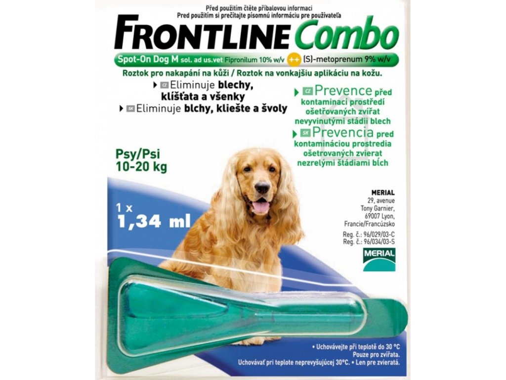 ZLOŽENIE FRONTLINE COMBO ® SPOT ON DOG M - Každá pipeta 1,34 ml obsahuje: Fipronilum 134,00 mg, (S)