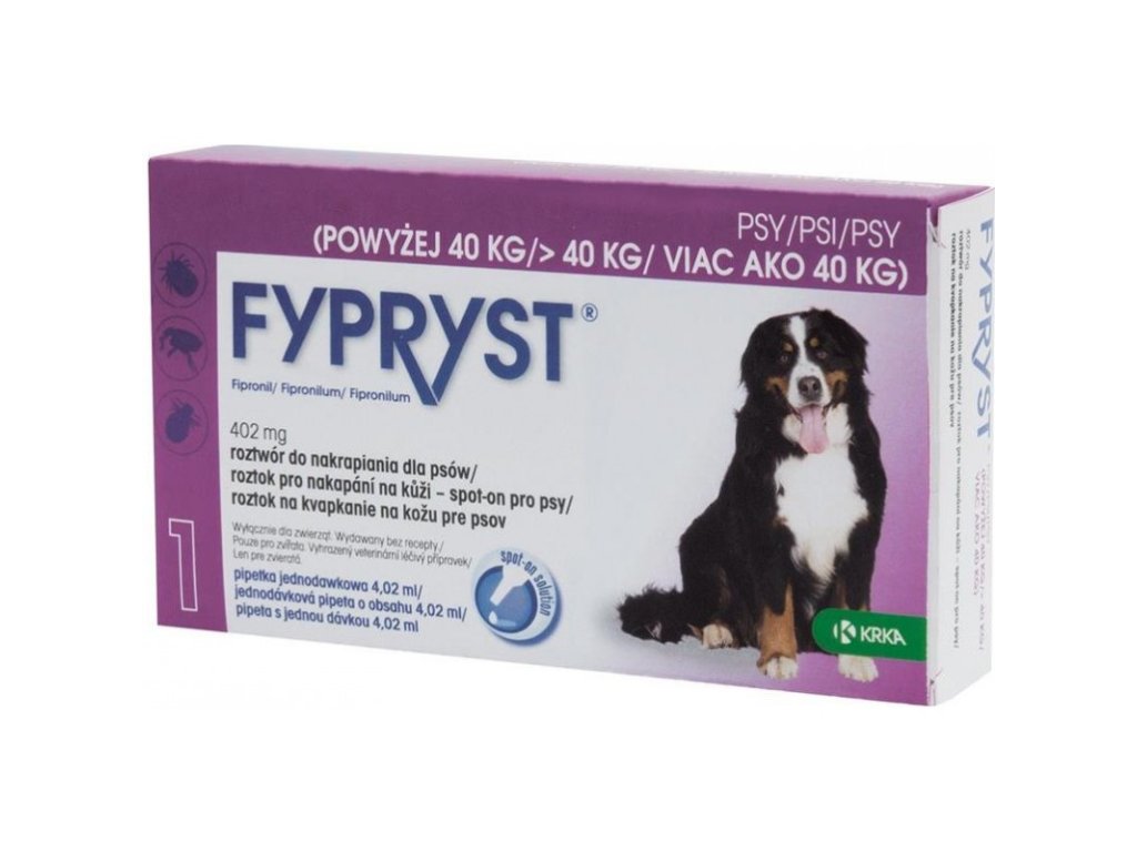 Fypryst 402 mg spot-on pro psy: 1 pipeta (4,02 ml) obsahuje: Fipronilum 402 mg.