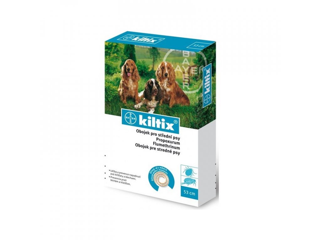 Kiltix je vhodný pro všetky plemená psov: malé, stredné, dlhosrsté i krátkosrsté. Obojok nemení farbu ani kvalitu srsti. Dokazuje to napríklad terénny pokus so 149 psy rôznych plemien, veľkosti aj dĺžky srsti. Pokus trval tri roky a po celú dobu bol pozorovaný vynikajúci účinok obojku proti napadnutie kliešťami. Obojok účinkoval po celú dobu sezóny (až 7 mesiacov). V niektorých prípadoch dokonca aj obojok nosený 11 mesiacov zabránil napadnutiu kliešťami. Niektoré psy boli ojedinele napadnuté , kliešte ale uhynuli ešte na srsti zvieraťa - to znamená, že sa vôbec neprisali. Zároveň bol obojok po celú dobu účinný proti blchám.