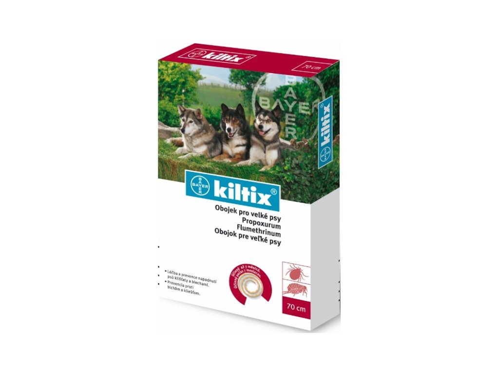 Kiltix je vhodný pro všetky plemená psov: malé, stredné, dlhosrsté i krátkosrsté. Obojok nemení farbu ani kvalitu srsti. Dokazuje to napríklad terénny pokus so 149 psy rôznych plemien, veľkosti aj dĺžky srsti. Pokus trval tri roky a po celú dobu bol pozorovaný vynikajúci účinok obojku proti napadnutie kliešťami. Obojok účinkoval po celú dobu sezóny (až 7 mesiacov). V niektorých prípadoch dokonca aj obojok nosený 11 mesiacov zabránil napadnutiu kliešťami. Niektoré psy boli ojedinele napadnuté , kliešte ale uhynuli ešte na srsti zvieraťa - to znamená, že sa vôbec neprisali. Zároveň bol obojok po celú dobu účinný proti blchám.