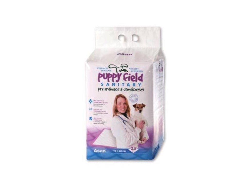 Hygienické ultrasavé podložky Puppy Field Sanitary Pads vo veľkosti XL sú určené pre ordinácie aj domácnosti. Ich využitie: - pre ordinácie a chovateľské stanice - pre zvieratá po operatívnom zásahu (domov si odnášate zviera zabalené v podložke, ktorá zachytí únik krvi a telných tekutín) - pre viacpočetné vrhy šteniat, inkontinentné zvieratá a chorých psov. Mimoriadna absorpčná schopnosť podložiek zaistí čistú domácnosť a prostredie, v ktorom sa zvieratá pohybují. Dobre pohlcujú vlhkosť a pachy. Podložka má 3 funkčné vrstvy: nepriepustná vrstva smerom k podlahe, absorpčná vrstva uprostred a jemná vrstva z netkanej textílie na povrchu. Rozmery: 90 x 60 cm. 25 ks v balení. 4 balenia v kartóne.