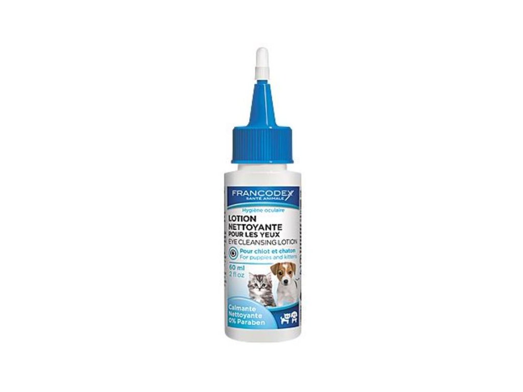 Vlastnosti : Čistiace mlieko na oči pre šteňatá a mačiatka pomáha zaistiť dokonalú hygienu očí a očných viečok: odstraňuje cudzie telieska a upokojuje oči v prípade podráždenia. Jeho použitie je bezpečné, pretože má pH totožné s pH sĺz.
