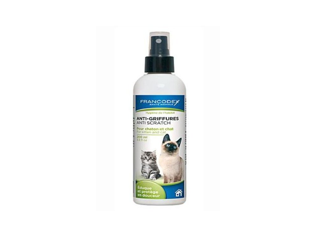 Vlastnosti: Sprej proti poškriabaniu pre mačky a mačiatka od Francodex Santé Animale zabráni, aby vaša mačka poškriabala nábytok, koberce atd.