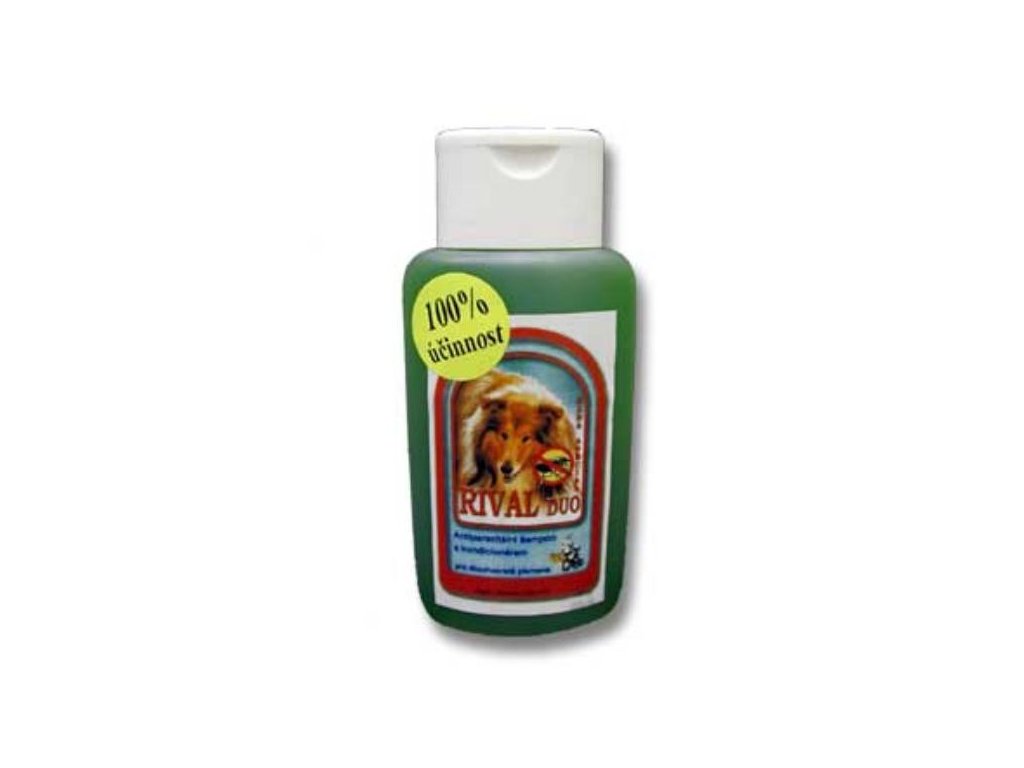 Rival DUO: antiparazitárny šampón s kondicionérom je určený pre psov a mačky s dlhou srsťou. Obsahuje špeciálny kondicionér, ktorý napomáha rozčesávaniu a údržbe srsti a dáva jej prirodzenú krásu, hebkosť a lesk. 100% účinnosť šampónu zaisťuje zložka Cypermethrin®, ktorá okamžite zahubí všetky parazity vo všetkých vývojových štádiách (blchy, kliešte - i prisaté, vši a iné) a jeho repelentné účinky zaručuje prírodný olej tea tree, ktorý tiež dáva tomuto výrobku charakteristickú vôňu. Je netoxický, bezpečný a obsahuje hydratačné zložky, ktoré zabraňujú vysušovaniu kože a srsti. Účinnosť minimálne 4 týždne. Odporúčame tiež ako antiparazitárny šampón pre psie salóny.