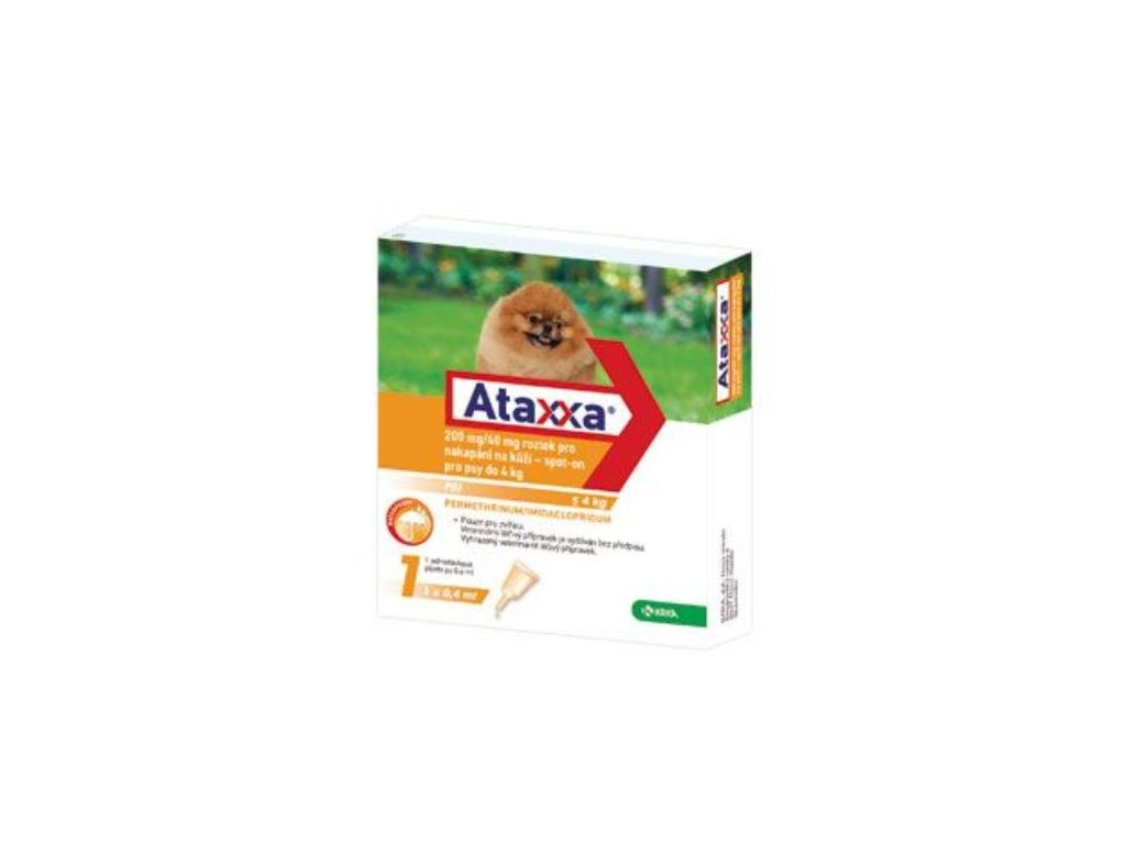 £ 4 kgAtaxxa 200 mg / 40 mg roztok na kvapkanie na kožu - spot-on pre psy do 4 kg0,4 mlminimum 10minimum 50