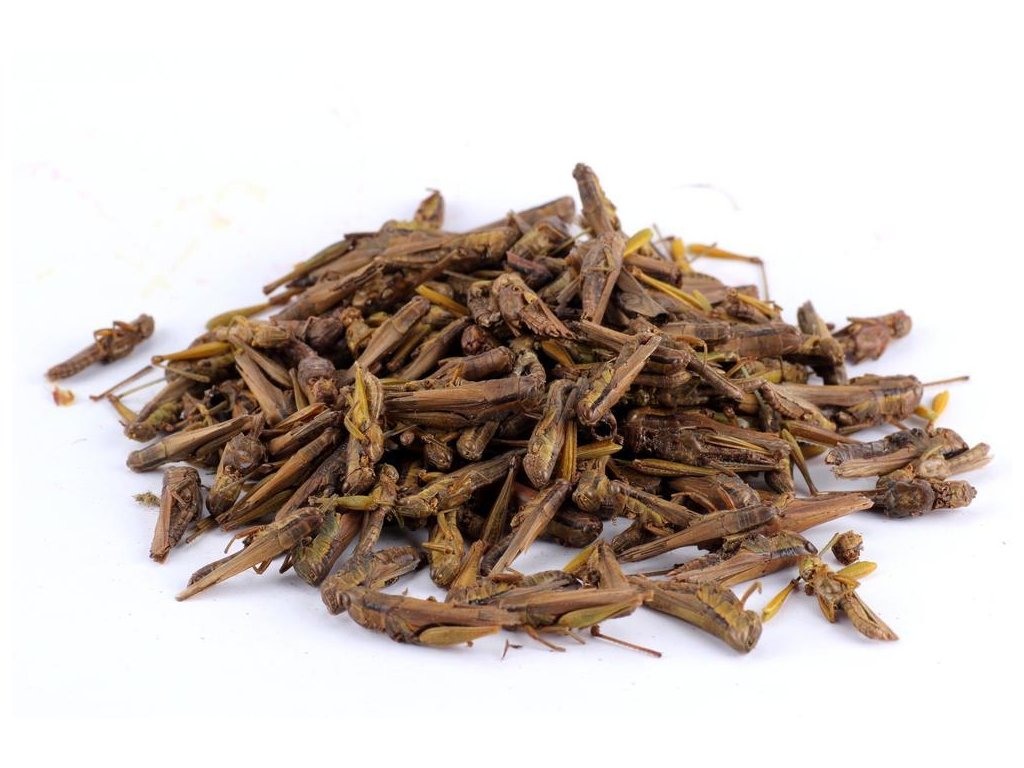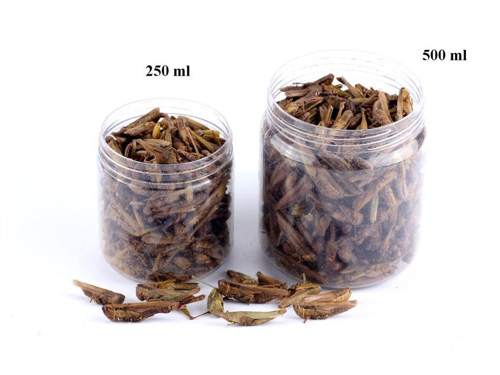 Charakteristika: Jedná sa o sušené lúčne kobylky a sarančatá. Telá sú veľmi dobre zachovalé a predstavujú pre hmyzožravé zvieratá výbornú náhradu živej potravy, keď tá nie je práve po ruke.