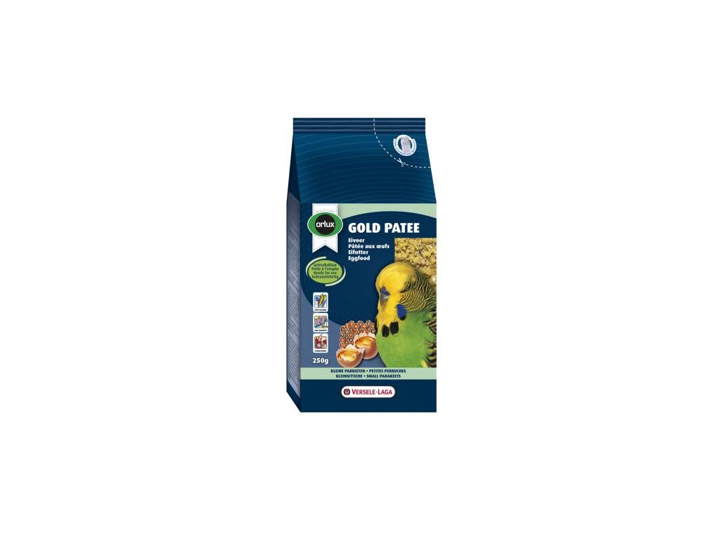 Vlhká vaječná zmes - Orlux Gold patee small parakeets Je vaječné krmivo určené pre andulky, neofémy a agapornisy. Toto krmivo má vysokú nutričnú hodnotu, a to vďaka pridaniu 100%-ného čistého a prírodného medu. Pridaním lyzínu a metionínu zaručuje optimálny rast a optimálny rast peria.