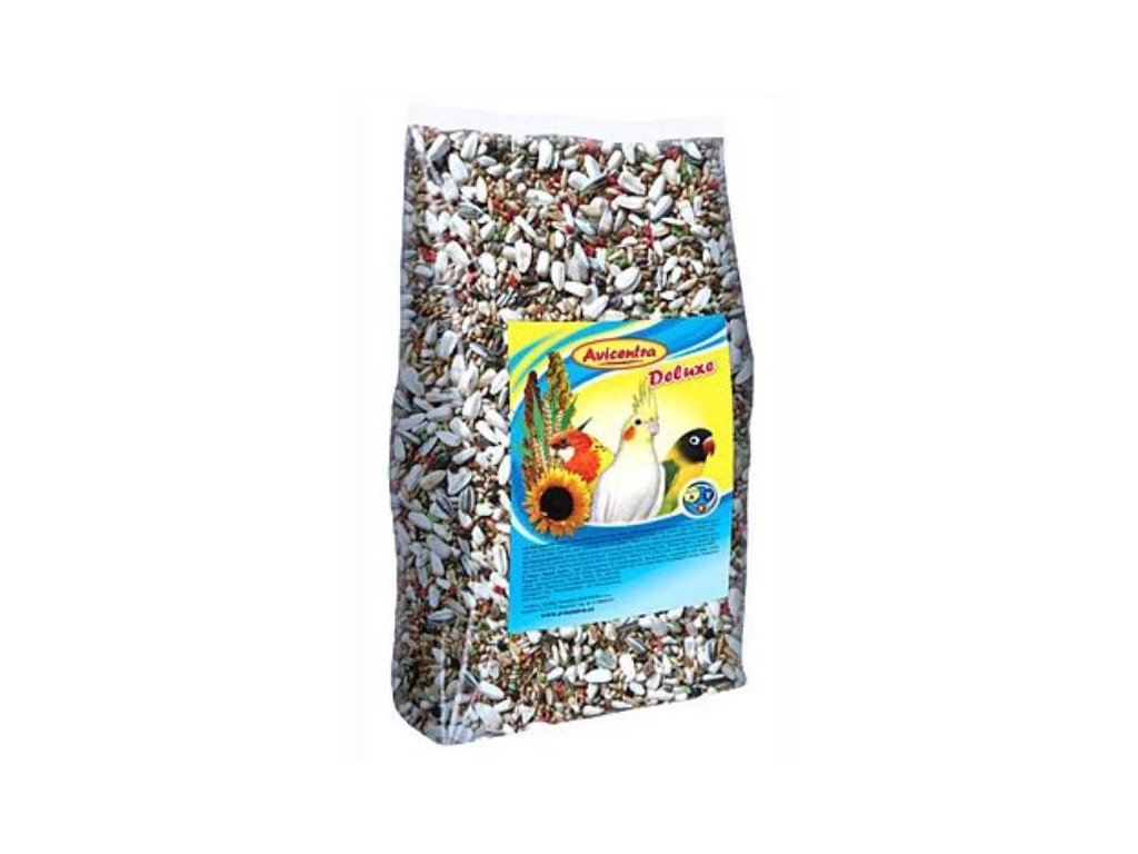 Zloženie: slnečnica biela, slnečnica žíhaná, proso červené, proso biele, kardy, ovos nahý, lesknica, ľan pohánka, semenec, vitamínové perly, extrudované obiloviny.