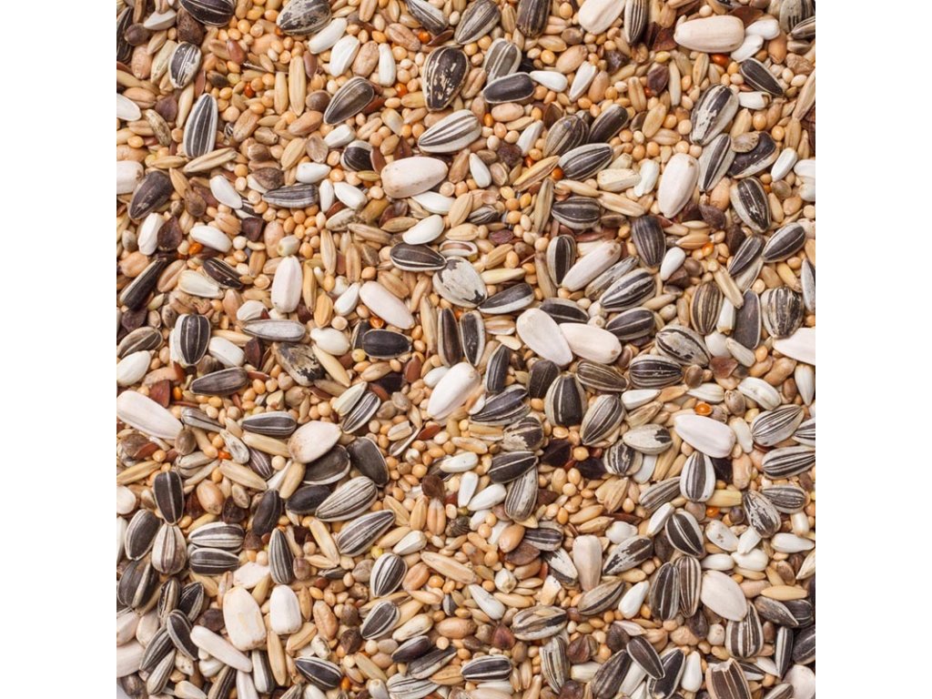 Zloženie: žlté proso, lesknica, pšenica, biele proso, lúpaný ovos, pásikavá slnečnica, kardi, biela slnečnica, červené proso, ľan, konope, pohánka, nelúpaná ryža.