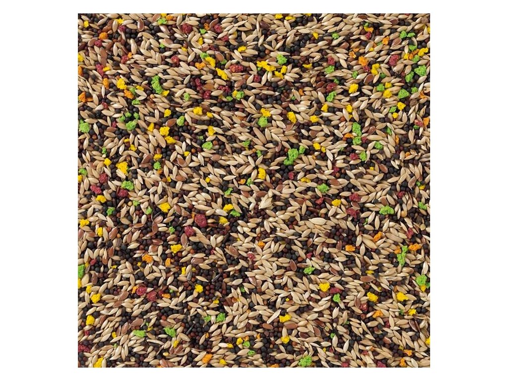 Základná zmes zrnín pre kanárikov obohatená o sušené ovocné granulky.