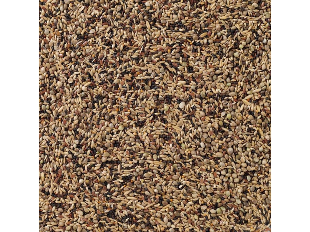 Zloženie: lesknica, konope, ľan, repka, lúpaný ovos, niger, čierna repka, žlté proso, divoké semená, čakanka, hnedá perila, červený a žltý mohár, modrý mak, biele proso, semeno šalátu.