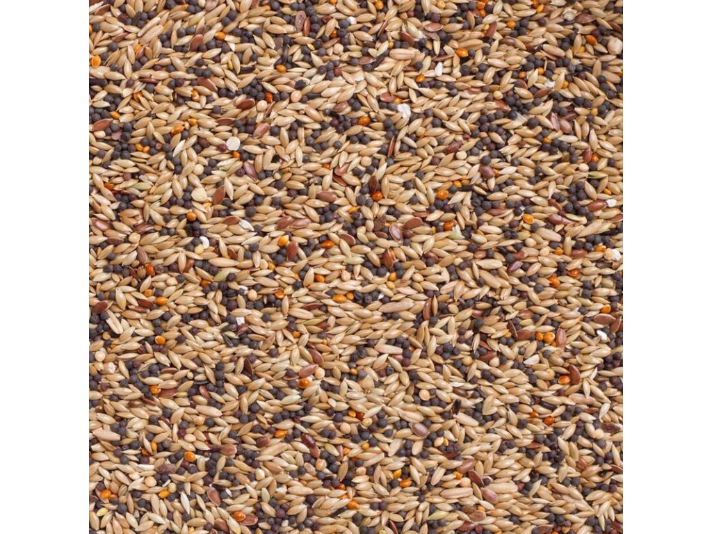 Zloženie: lesknica, repka, lúpaný ovos, ľanové semeno, konopné semeno.