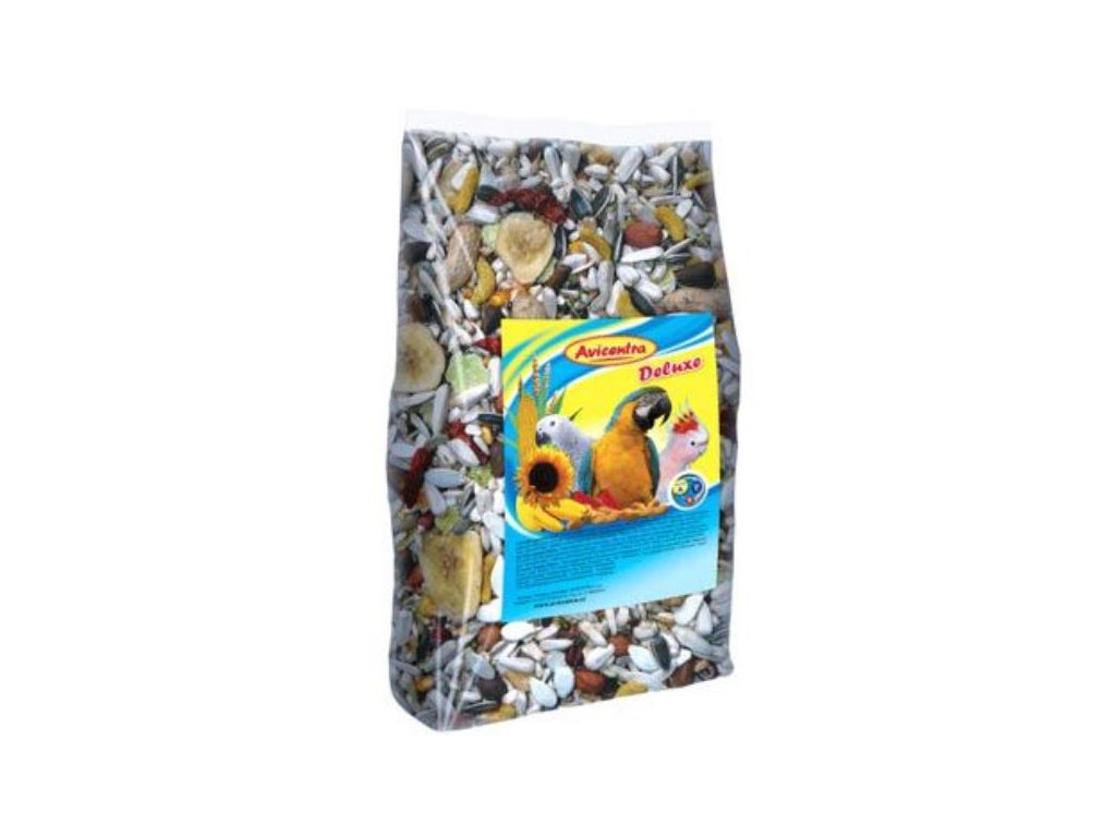 Zloženie: slnečnica biela, kardy, ovos nahý, kukurica žltá, dyňa, arašidy v šupke, arašidy lúpané, slnečnica biela KENYA, dari, lesknica, čirok červený, pohanka, kukurica červená, ostropestrec, mungo, semenec, banány, kukuričné vločky, slnečnica pruhovaná veľká, sója, hrachové vločky, extrudovaná ryža, chilli papričky.